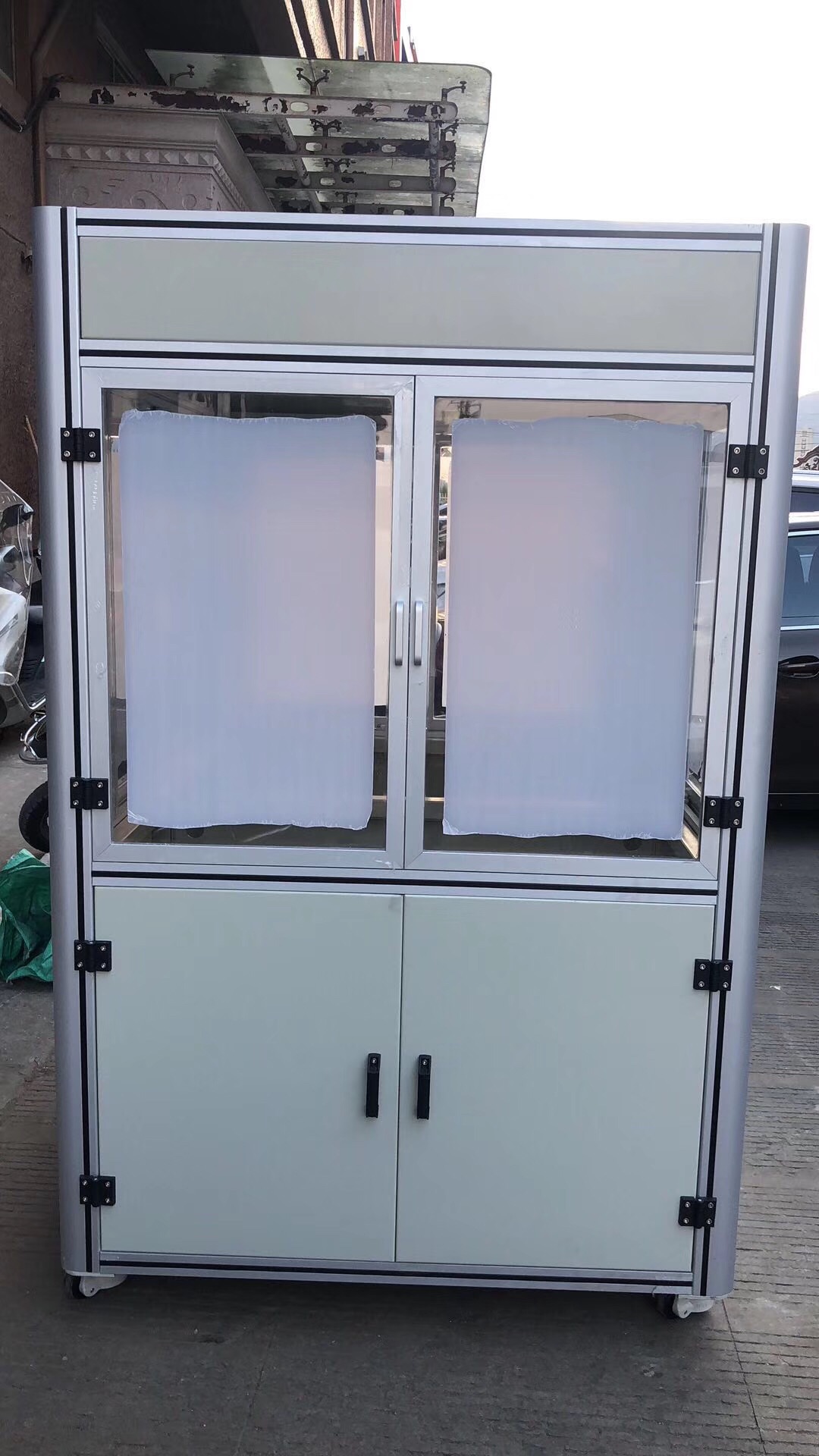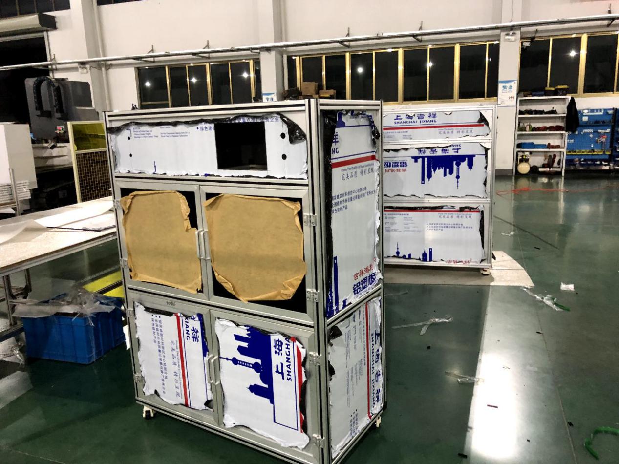 了解到王總我當(dāng)時就問一下王總的機(jī)架的具體承重及尺寸,并且我們互相建立了微信技術(shù)小群1 對1技術(shù)參與直接溝通方案設(shè)計(jì)。約在2天經(jīng)過技術(shù)的1對1的技術(shù)服務(wù),我們雙方把方案敲定了。因?yàn)闀r間的關(guān)系,我們第一次試制了5臺。自動化設(shè)備用鋁型材框架+鈑金做門。并與7月30號順利交期。王總他們收到貨后經(jīng)過性能測試,鋁型材框架在承載力和重量及生產(chǎn)效量能都遠(yuǎn)遠(yuǎn)大于原來鈑金焊接機(jī)架。王總為此非常開心。